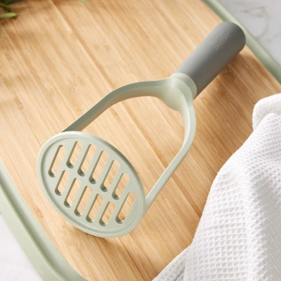 - VERSATILE SET: Serving tong 10.5″, whisk 11″, potato masher 9.25″, Balance. The serving tong features a heat-resistant, non-stick silicone tip and a sleek satin-finish stainless steel handle. The balloon whisk has a stainless steel head with a silicone cover and an ergonomically designed handle made from recycled PP. The potato masher is constructed from lightweight, non-stick nylon with a soft touch handle also made from recycled PP, adding a subtle splash of color to your kitchen.