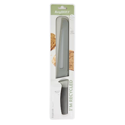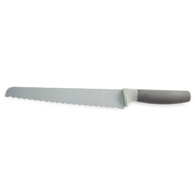 - CONSTRUCTION: Non-stick Bread Knife 9″, Balance, Gray. Crafted from a stainless-steel blade and ergonomically designed recycled PP handle with a protective sleeve for added safety. Adds a soft pop of color to any kitchen. Knife is great to get even slices without tearing the bread up.