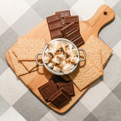 This versatile cutting board is made of a thick slab of bamboo for a touch of nature indoors that is so beautiful, you’ll want to serve every cheese and cracker display on it. When not in use, this hangable cutting board doubles as a kitchen display. Cheese knives are made of high-quality stainless steel blades with ergonomic wood handles for a firm and safe grip. A hanging loop that allows for easy storage and minimal kitchen space. Cutting board size: 11″x7.75″x1.5″ comes with 4.5″ Wedge Cheese Knife, 4.5″ Parmesan Cheese Knife, and 5″ Cheese Fork. Bamboo chopping boards are seeing a resurgence in popularity as they are considered a “green product.” Caring for bamboo cutting boards is easy, just wash with soap and water. The natural beauty and durability is unique.