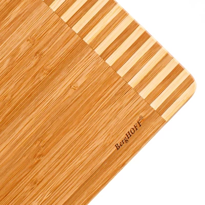 BergHOFF’s bamboo rectangular cutting board, with its elegant two-toned striped design, is built to last and gentle on your knives and is ideal for all your chopping and cutting tasks. The board’s vegetable oil seasoning not only highlights the bamboo’s natural aesthetics but also safeguards it from moisture and odors, ensuring long-term durability. Its spacious surface provides plenty of room for prepping various ingredients, from fruits and vegetables to meats and cheeses. The smooth surface of the bamboo makes it easy to clean and maintain, while the lightweight design allows for easy handling and storage. Hand wash recommended. Size: 13″ x 9″ x 0.6″