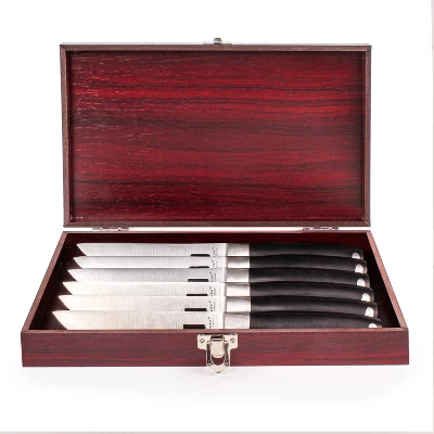 - Offering a precise cut, that cuts through steaks as effortlessly as butter. Hand-sharpened blade for long-lasting sharpness. Ergonomically designed handle for a firm and safe grip.