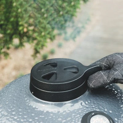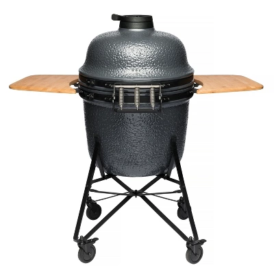 The ceramic shell produces high temperatures for searing, roasting and grilling, but also allows for low-temperature smoking. Constructed for a uniform heat circulation resulting in fast and consistent cooking. The top venilation cap allows you to control the air with precision and the thermometer on the lid monitors the temperature inside for precise cooking with perfect results. Fired with lump charcoal or aromatic woods. High quality, top of the line construction.