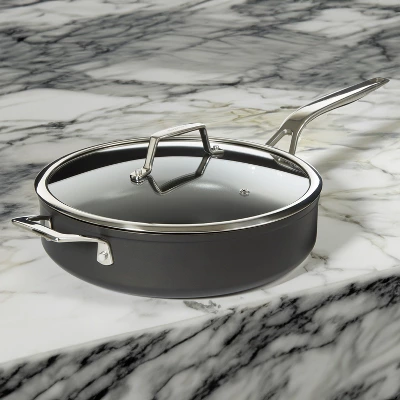 - CONSTRUCTION: 11 inches Deep skillet 4.3-quart, and glass lid, black. Crafted from top-tier hard-anodized aluminum, featuring the FernoGreen non-stick coating designed for extended longevity. Glass lid allows you to keep your eyes on the ingredients while cooking and the steam vent prevents the lid jumping up/down to preserve the heat and flavors, also keep your cooking surface clean.