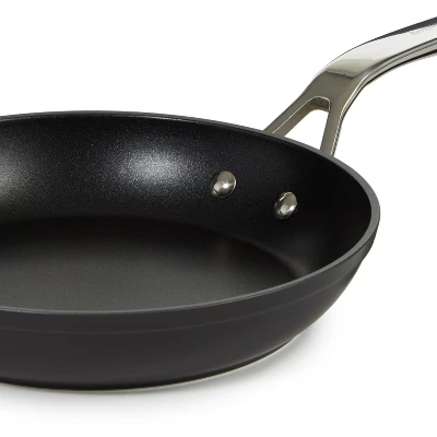 BergHOFF’s Essentials hard anodized cookware for exceptional functionality and bold beauty. Cook with ease using this Essentials versatile cookware. These ideally sized fry pan set is tailor-made to assist in the preparation of either your breakfast in the morning or your evening meal at night. Constructed from hard-anodized aluminum body with BergHOFF’s FernoGreen nonstick coating, 100% Non-Toxic and does not contain PFOA, GEN-X, BPA, APEO, NMP or PFOS for healthier no-oil or low oil cooking and make it easy to clean. Designed with full disk bottom to avoid scratches on your glass top cooktop and to ensure rapid, even heat distribution for energy-efficient cooking. Featuring polished stainless steel and ergonomic handles. They can be used on any kind of stovetop including induction, oven safe up to 450°F. BergHOFF’s cookware is built to withstand heavy use with a fast, simple cleanup.