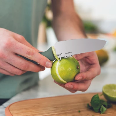 - 3-PIECE SPECIALTY SET: Vegetable knife 4.25″, Small chef’s knife 5.5″, Utility knife 4.5″, Forest. Crafted from High-quality Stainless Steel with a sleek satin finish. This set is made from recycled polypropylene and thermoplastic rubber and features an ergonomically designed handle for a comfortable and secure grip.