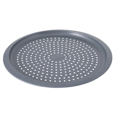 - Package includes: Non-stick Perforated Pizza pan 14.25″ x 13.5″, 1.1 qt., Round, Gray