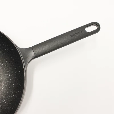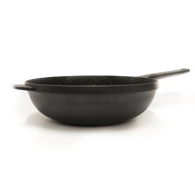 Add your favorite vegies, some chicken and a tasty sauce in this stir frying pan and you’ve got a delightful meal! This aluminum pan distributes heat quickly and evenly while the flat bottom ensures that all your stir fry ingredients are cooked equally. The non-stick coating means you need less to no oil, perfect for when you want to cook healthily.