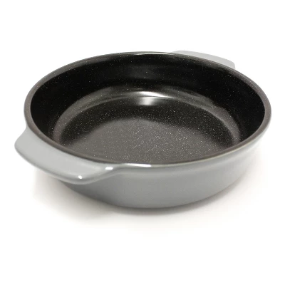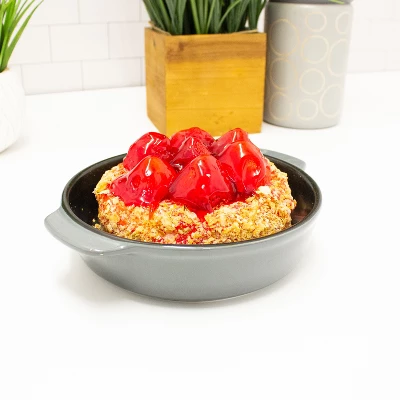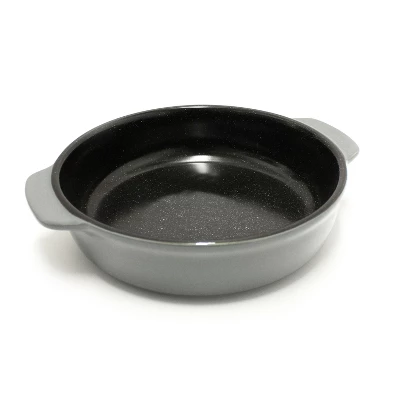 Bake, serve, store and reheat meals, you can do it all with this round baking dish! Whether you’re in the mood for a chicken pot pie or some freshly baked cinnamon rolls, just get out this stoneware beauty and slide it in the oven with the help of the convenient handles. The durable material with enamel coating makes sure your meal or snack bakes evenly, keeps it warm at the table and is a breeze to clean once you’ve finished those last bites. This dish is microwave, oven and dishwasher safe.