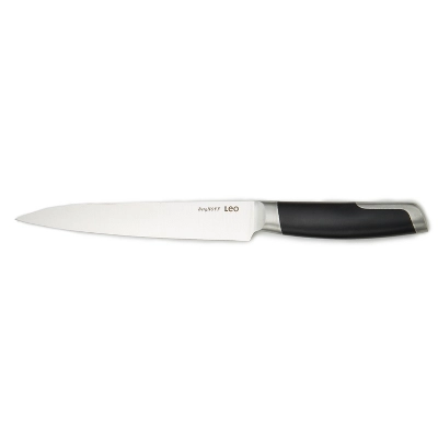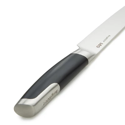 Looking for a knife that will cut your roast with silky-smooth precision? Then this Leo Graphite Stainless Steel Carving Knife 8″ is just the thing for you! This knife is crafted from high-quality X50CrMov15 stainless steel with soft touch ABS handle. Its stainless-steel blade has an edge that will retain its razor sharpness and glides right through cooked meat and poultry. A well-balanced knife is a pleasure to use and makes the thinnest slices for a clean-cut result. On top of that, you’ve got the soft touch handle fits your hand like a glove for extra comfort and safety. This carving knife is a specialized tool with a long, thin blade, ideal for precisely slicing and serving meats, making it a perfect choice for family gatherings and special occasions.
