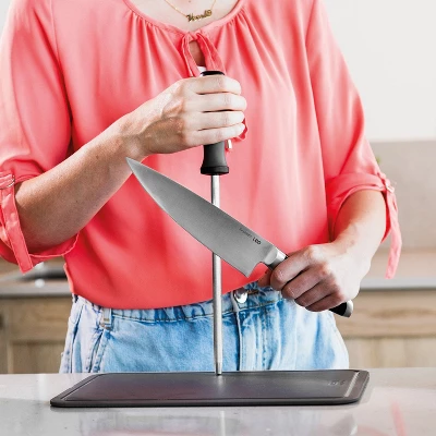- LIGHWEIGHT AND EASY TO HANDLE: The lightweight knife with soft-touch handle is a pleasure to use and easy to handle. This safe and durable knife sharpener can even fit in the 13pcs knife block set Graphite. The very high-quality stainless steel ensures easy sharpening of the blades and a durable characteristic.