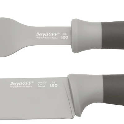 Slice your turkey, ham or Sunday roast as thin as you want with the Leo carving set. The carving fork holds your meat securely in place with its two sharp tines while you use the thin sharp blade of the carving knife to carve the meat precisely. Both the carving fork and carving knife have a soft-touch handle that’s comfortable to hold in your hand and well-balanced. Gather everyone around the dinner table and impress them with your carving skills! Set includes 7.5″ carving knife and 6.75″ carving fork
