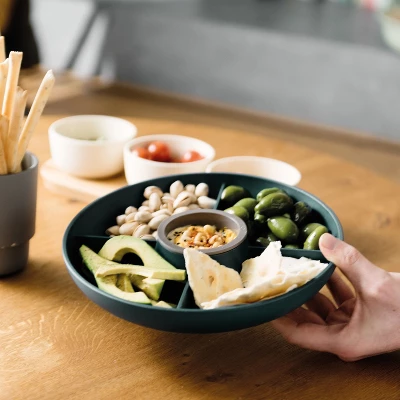 A refreshing drink, some good conversation with family or friends and a tasty snack, the perfect ingredients for a wonderful evening. The Leo apero set is great for serving appetizers, cookies, chips or other yummy treats. Beside a serving dish the set comes with a small cup for sauces and a bigger cup for larger appetizers.