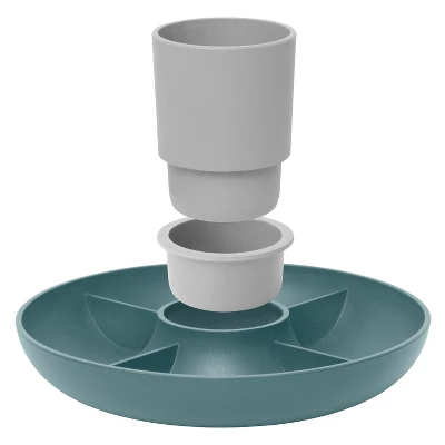 - Package includes: Bamboo Fiber Tray with 4 compartments (6 oz. each), Sauce Cup 4 oz., and Tall cup 4 oz., Blue &Grey