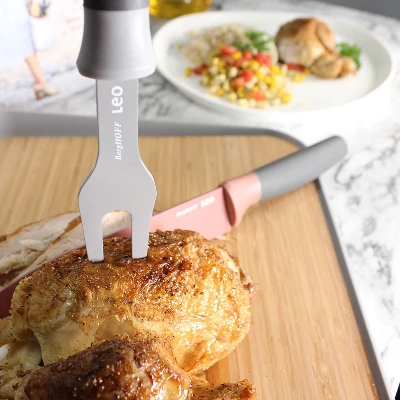Serving up a hot roast or an assortment of cold meats? Get out your pink Leo carving knife and cut your meat with precision and grace! The thin long blade makes it easy to manoeuver around bones while the comfortable, soft-touch handle helps you to avoid hand strain. Store the carving knife in its protective sleeve to keep the blade in perfect condition and protect your hand when you’re reaching for the knife in the kitchen drawer.