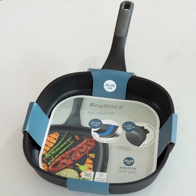 - Nonstick Cast Aluminum 10.25″ Grill Pan with a stay-cool handle for a comfortable, secure grip and features a non-stick CeraGreen coating for easy food release.