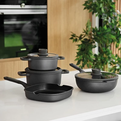 - Cast aluminum body distributes heat fast and evenly so your foods are cooked thoroughly for fast energy-efficient cooking. Built to withstand heavy use and compatible to use on all cooktops such as induction, gas, electric, vitroceramic, halogen, and downdraft cooktops.