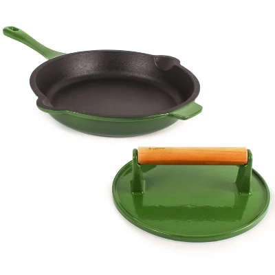 BergHOFF Neo 2Pc Cast Iron Cookware Set, 10″ Fry Pan & Steak Press