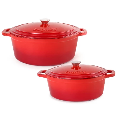 BergHOFF’s Neo Enameled Cast Iron is built to last for years to come. Crafted from durable cast iron with an enameled body this cookware heats up evenly and stays hot longer. The ergonomic handles provide a secure grip. Our 4pc set includes one 5qt covered dutch oven, and one 8qt covered dutch oven. Cook like a pro with the versatile dutch oven that can go effortlessly from browning on the stove top to roasting in the oven. Braise short ribs, make hearty stew, three bean chili, curry chicken, and so much more. Our Neo cast iron cookware is suitable for all cooktops including gas, electric, ceramic, glass, and induction. Neo cast iron cookware is also oven ready. You can sear your food on the stovetop, and finish in the oven. Please allow cookware to cool completely before attempting to clean. Handwash recommended with warm water and mild detergent; dry thoroughly. Avoid cleansers that contain bleach or citrus extracts.
