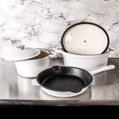 BergHOFF Neo 5Pc Cast Iron Cookware Set, 3Qt Covered Dutch Oven, 5Qt Covered Stock Pot, & 10″ Fry Pan