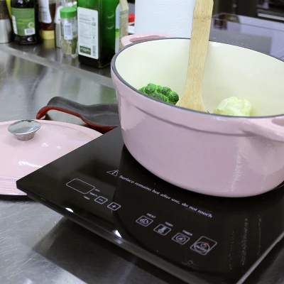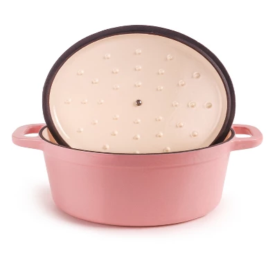 BergHOFF’s Neo Enameled Cast Iron is built to last for years to come. Crafted from durable cast iron with an enameled body this cookware heats up evenly and stays hot longer. The ergonomic handles provide a secure grip. Our 4pc set includes one blue fry pan, one blue 11″ square grill pan, and one blue 5qt covered dutch oven. Cook like a pro with the versatile dutch oven that can go effortlessly from browning on the stove top to roasting in the oven. Braise short ribs, make hearty stew, three bean chili, curry chicken, and so much more. Use the 11″ grill pan to create homemade paninnis, meaty steaks with the perfect grill marks, and chicken breasts grilled to perfection. The beautiful cast iron fry pan with its sturdy handle is another multipurpose tool in your kitchen arsenal. Use the fry pan to make succulent lamb chops, crispy bacon, and even a delicious cake. Fry pan has an integrated pour spout which allows you to easily drain any unwanted fat from the pan. Our Neo cast iron cookware is suitable for all cooktops including gas, electric, ceramic, glass, and induction. Neo cast iron cookware is also oven ready. You can sear your food on the stovetop, and finish in the oven. Please allow cookware to cool completely before attempting to clean. Handwash recommended with warm water and mild detergent; dry thoroughly. Avoid cleansers that contain bleach or citrus extracts.