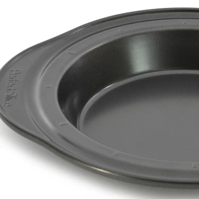 3pc Pie Pan Set is more than quality baking pans; It’s also a convenient cutting system. The unique patented guideline grid around the outer edges of every pan allows you to simply line up an exclusive Perfect Slice cutting tool, and press down to create any portion size desired. Every slice is beautifully uniform. The cutting tool with silicone handle is tough enough to cut the cake yet won’t damage your pan.