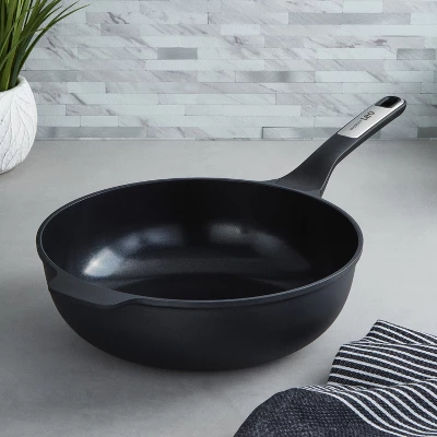 Leo Phantom wok pan combines eco-friendly innovation with superior performance, crafted from recycled cast aluminum for a sustainable kitchen choice. Its non-toxic, 100% natural-based CeraGreen ceramic coating is free from PFAS and PTFE, ensuring a safe and healthy cooking surface. The non-stick finish allows for easy food release and effortless cleaning. Featuring a full disk bottom, this wok pan provides even heat distribution for optimal cooking results. The long, ergonomic stay-cool handle ensures a comfortable grip and easy maneuvering. Complete with a matching lid, the pan is suitable for use on glass top electric, induction, gas, halogen, and vitro-ceramic cooktops. For best results, hand washing is recommended. Available in 2 sizes: 11″/4.6qt. and 12″/5.3qt.