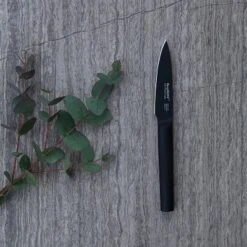 The Ron 3.25″ Black Paring Knife is the perfect choice for paring fruits and vegetables. Choose from black steel knives featuring a titanium and non-stick coating with either contrasting ashwood handles or matching black handles. Or simply don’t choose and mix the two styles. Well balanced with a heavy bolster providing perfect balance for increased control. Handle: 18/10 Stainless Steel Hollow Handle, Blade: Chrome-molybdenum-Vanadium steel with a black layer coating (titanium + non-stick coating)