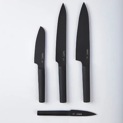 - Knife blade is made from a peerless blend of metals and features a non-stick coating to ensure a long-lasting addition to your kitchen. Seamless construction for extra hygiene. Ergonomically designed handle for a firm and safe grip. Well-balanced with a heavy bolster for increased control. Double-coated blade with Titanium PVD and non-stick coating for smooth cutting.