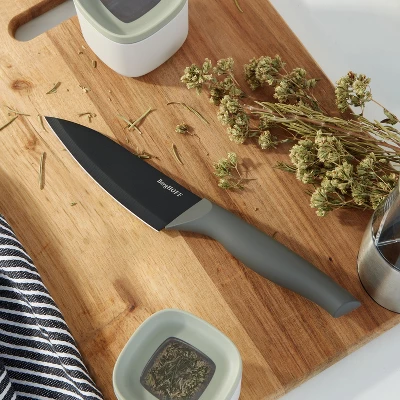 - Stainless steel 5″ Chef’s knife with nonstick ceramic coating and ergonomic PP handle.