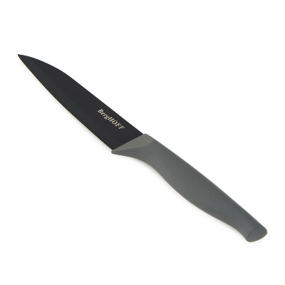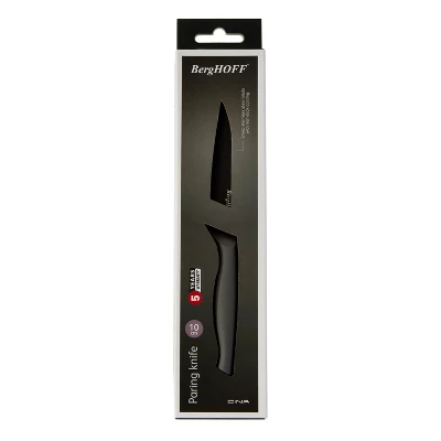 - Stainless steel 4″ paring knife with nonstick ceramic coating and ergonomic PP handle. Includes PP protective sleeve.