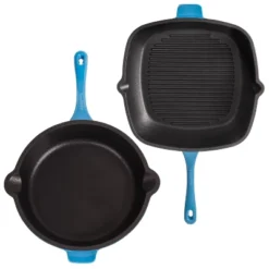 BergHOFF Neo 3Pc Cast Iron Cookware Set, Fry Pan 10″, Square Grill Pan 11″ & Slotted Steak Press