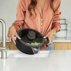 BergHOFF Leo Stone+ 10Pc Nonstick Ceramic Cookware Set With Glass Lid, Recycled Cast Aluminum