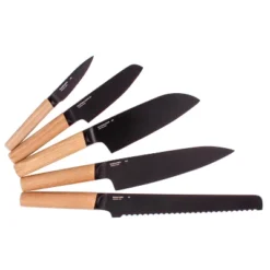 BergHOFF Ron 6Pc Knife Block Set, Natural Wood Handle, Brown